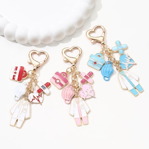 Llavero médico de dibujos animados, joyería hecha a mano de aleación de Zinc con máscara, tirita, esmalte de corazón para médicos, enfermeras, buen regalo