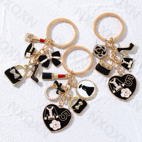 Elegante mujer sombrero arco tacones altos esmalte llavero corazón lápiz labial llavero para niñas buen regalo decoración joyería hecha a mano