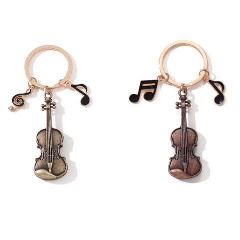 Violino clássico Notas Esmalte Keychain Musical Instrument Music Key Ring Bom Presente para Amigos Músico Handmade Jóias Set